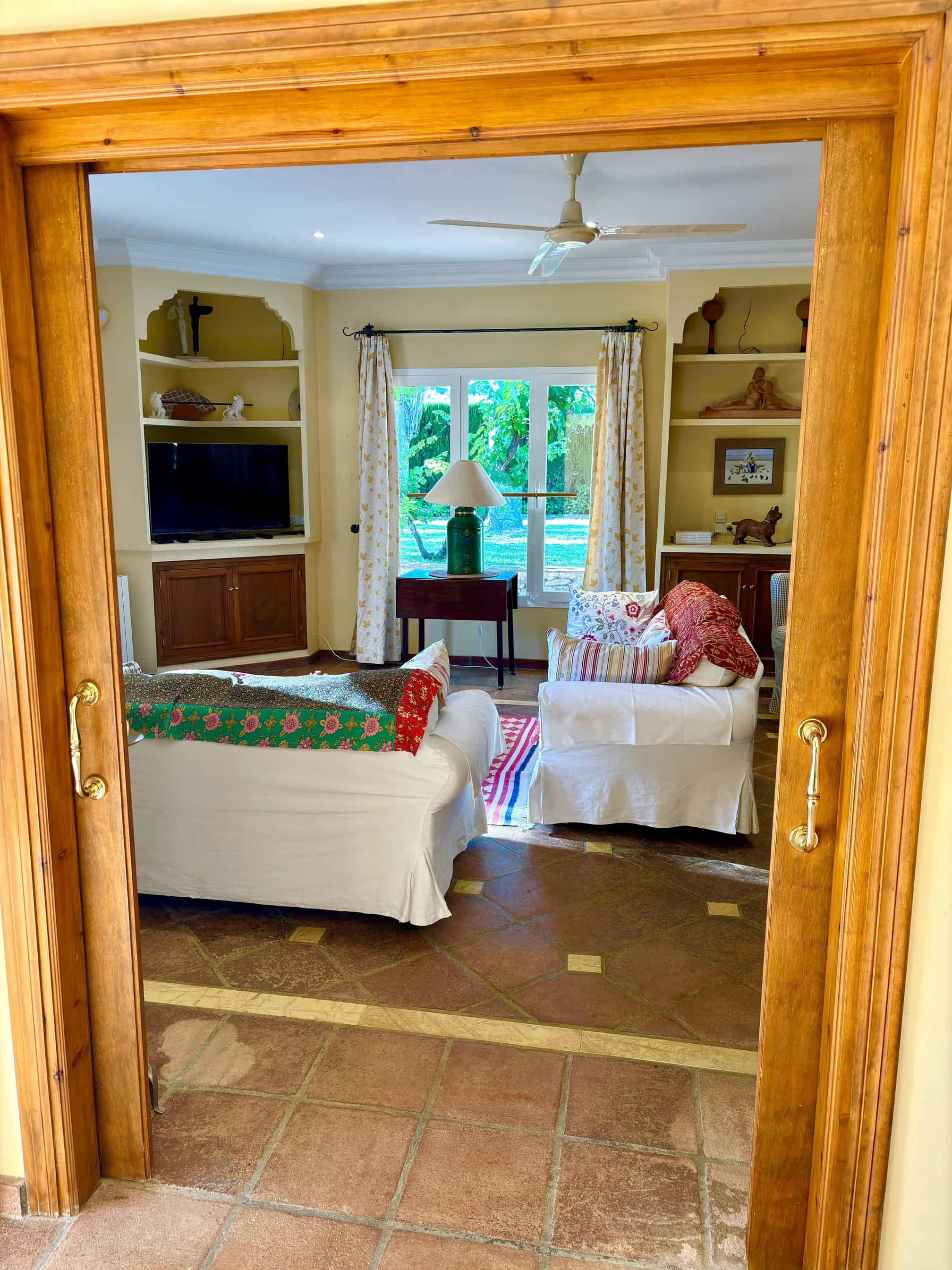 Mixing luxurious lifestyle with rustic Andalucian charm, Villa Finca Maridadi is a spacious and relaxing property to unwind in. With a comfortably furnished sitting room of 15 x 6 meters, a large open fireplace, a beautifully appointed open kitchen / dining room with a large range cooker, two fridge freezers and two dishwashers, the Villa has ample space for large groups or those looking maximise their relaxation. The dining room has an antique dining table seating up to 12 people. There is a separate laundry room with a washing machine and dryer. There is also a guest cloakroom on the ground floor.